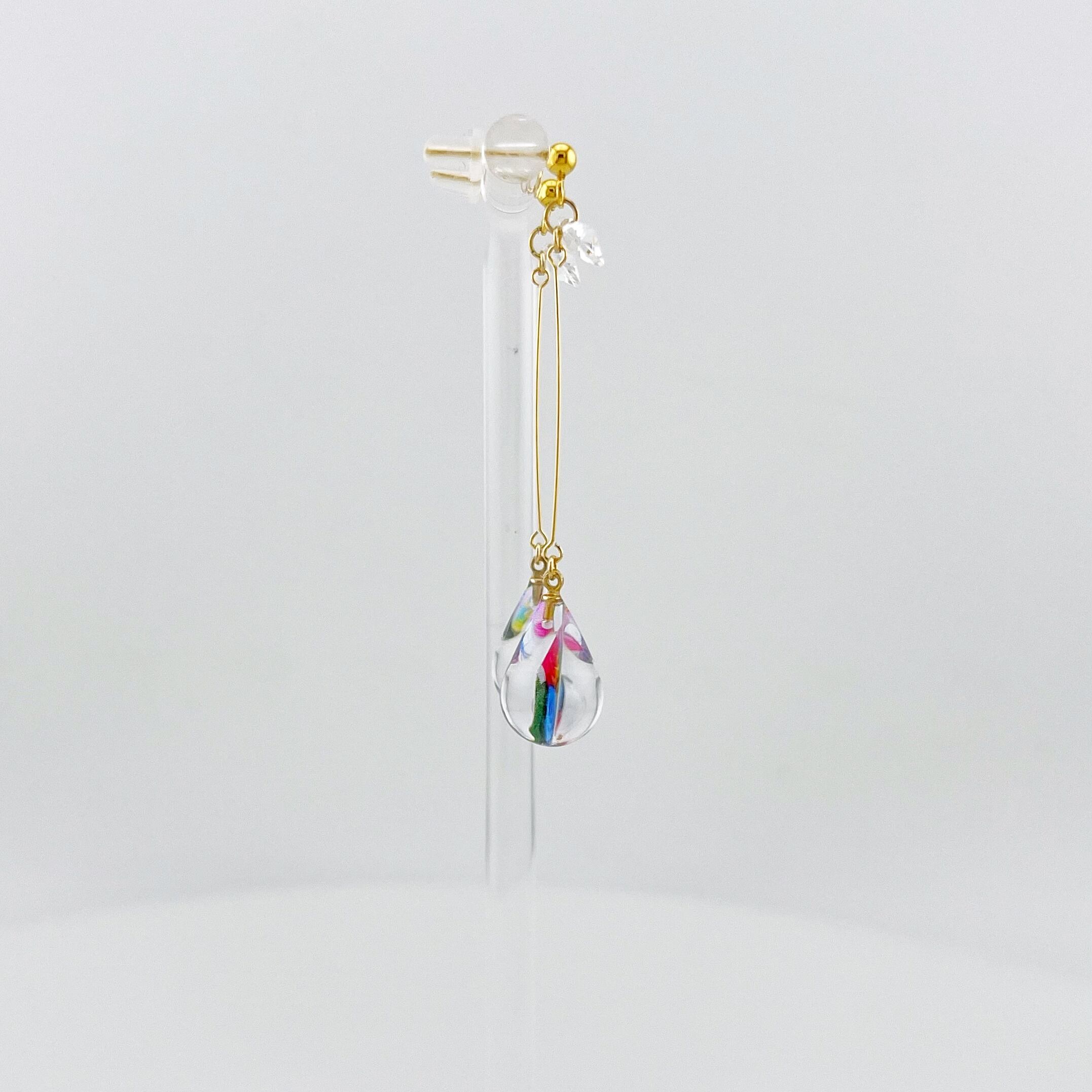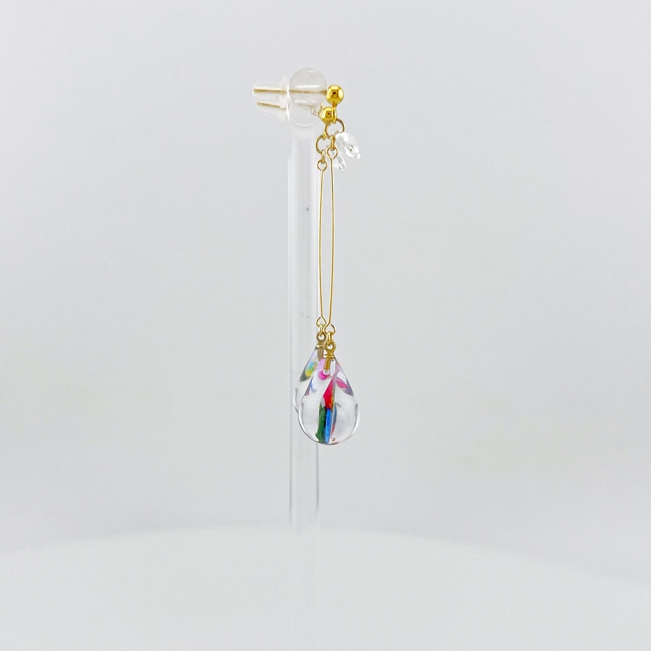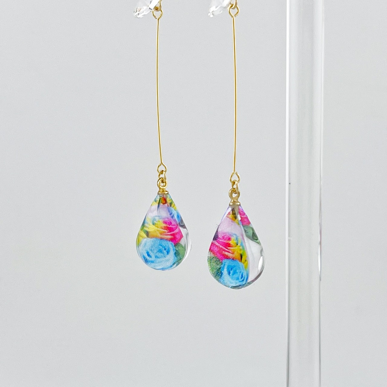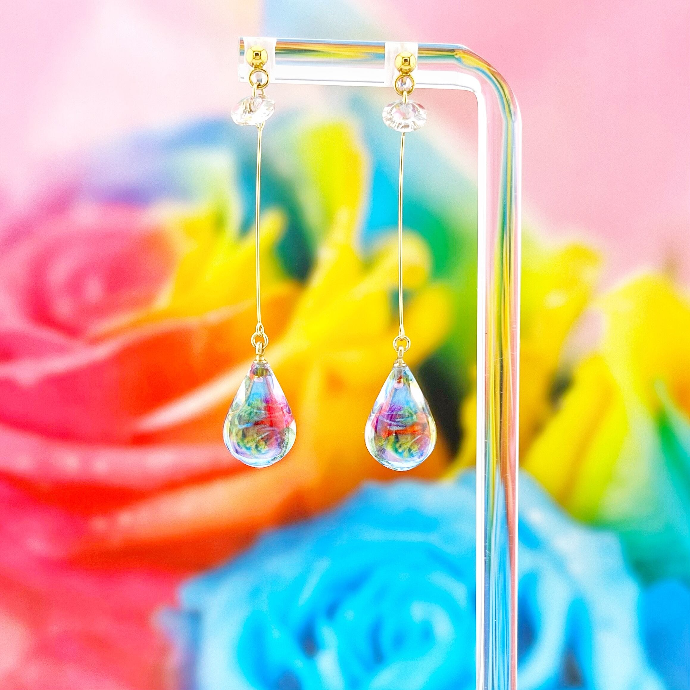 ゆれるしずくピアス/レインボーローズ(イヤリング可)