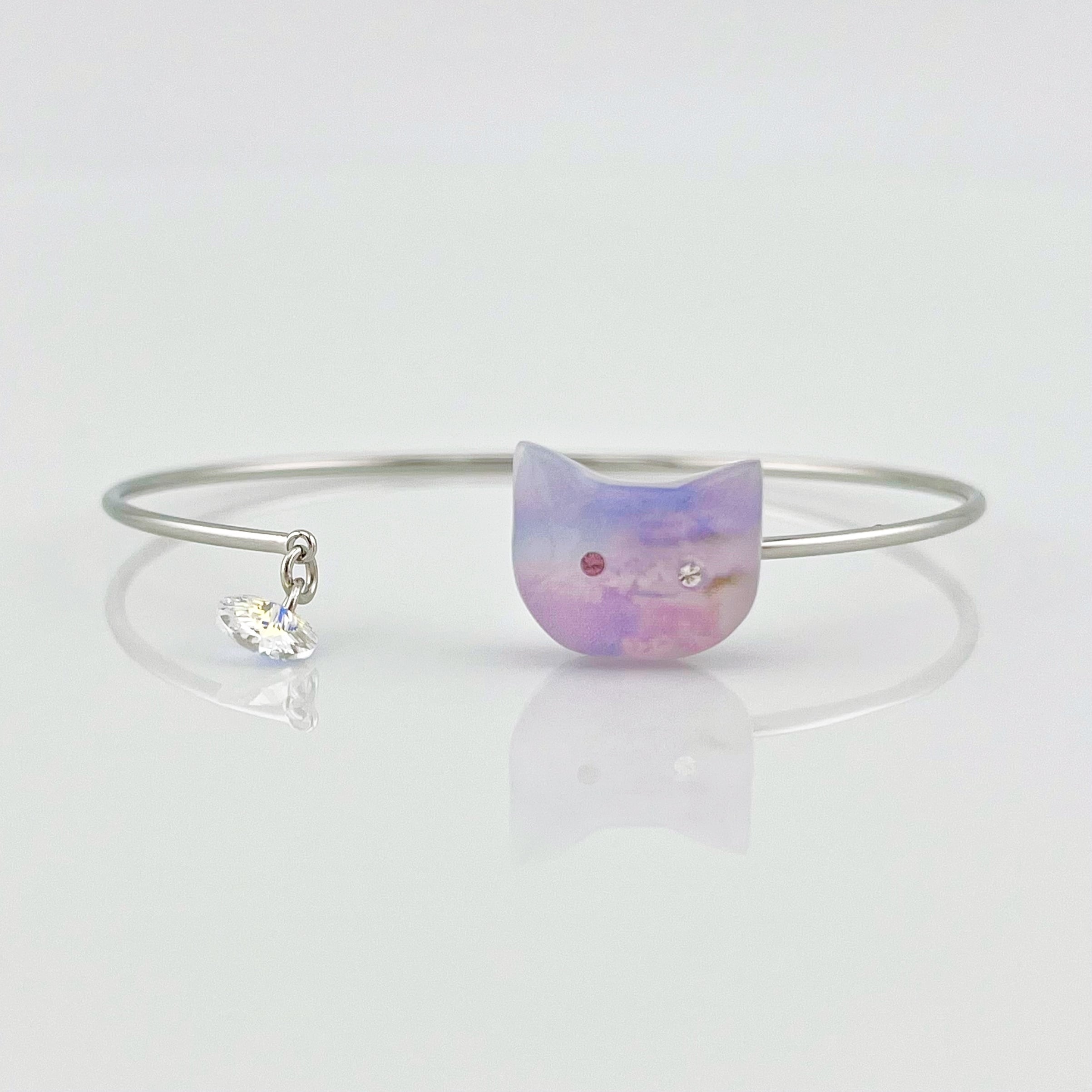 作家自身が撮影したレースフラワーの写真を猫ちゃんのカタチのなかにとじこめたバングルです。