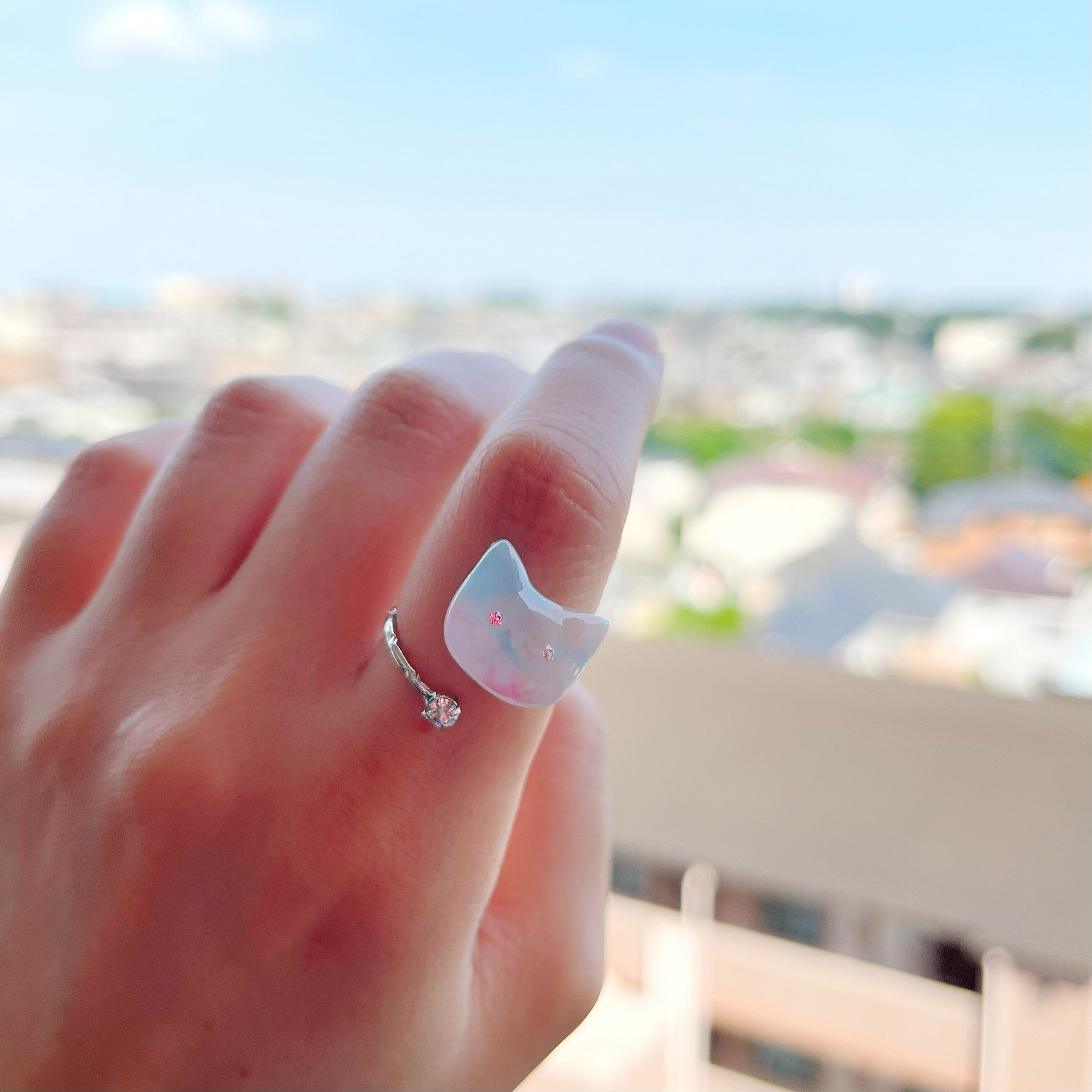 写真を閉じこめた猫のパーツは手で磨きあげて一点づつ心をこめて制作しております。キラリと輝く猫のオッドアイはクリスタルガラスで表現しています。おとなし過ぎず派手すぎず、程よいアクセントとなって指元を華やかに彩ってくれます。