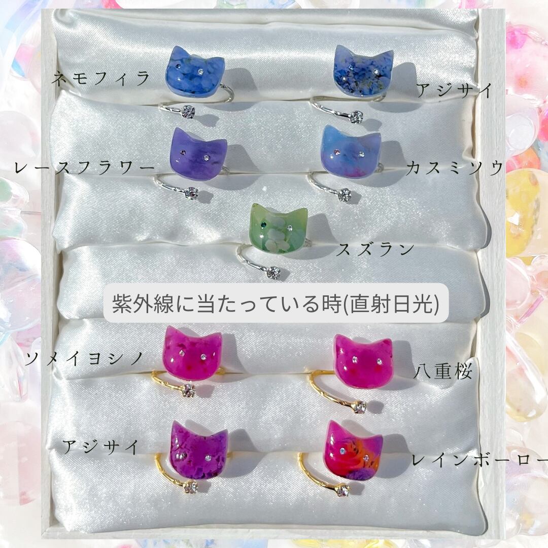 紫外線で色が変わる/寂しがり屋のひとり好き猫リング/アジサイ